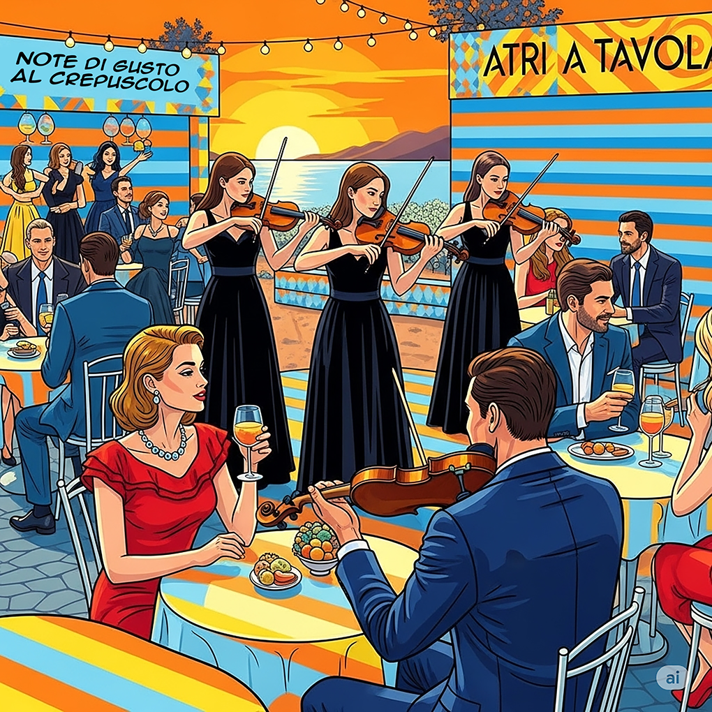 Note di Gusto al Crepuscolo: Armonie al Tramonto. Un'esperienza sensoriale unica! Questo speciale concerto aperitivo celebra la bellezza del tramonto, frutto della collaborazione tra Atri a Tavola, il prestigioso Festival Internazionale dei Duchi D'Acquaviva e Panorama Cafè. L'evento prenderà vita sulla suggestiva terrazza del belvedere della Villa Comunale, un punto d'osservazione privilegiato che offre un panorama mozzafiato. Davanti ai vostri occhi si aprirà la costa adriatica, con la linea dell'orizzonte che dolcemente si fonde con l'infinito del mare. A rendere l'atmosfera ancora più magica, la caratteristica brezza serale che solo la città di Atri sa regalare. A fare da sottofondo a questa cornice incantevole saranno le delicate note dei violini, interpretate dai talentuosi corsisti del Festival. E naturalmente, il gusto sarà protagonista grazie a due prestigiose cantine locali, che delizieranno i palati con le loro eccellenze. Preparatevi a brindare con un "Cin Cin" a Note di Gusto al Crepuscolo, dove musica, sapori e paesaggi si fondono in un'armonia perfetta.